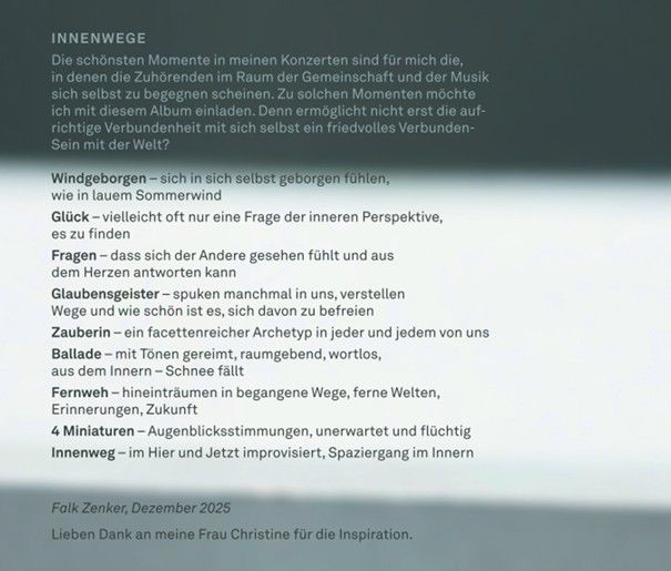 „Falk Zenker ist ein Könner und zaubert auf seiner Konzertgitarre ganz großes Kino. Seine Kompositionen sind durchdacht, haben ausgeklügelte Spannungsbögen und sind dadurch wahre Stimmungszauberer. Seine Art, zu instrumentieren, besticht."